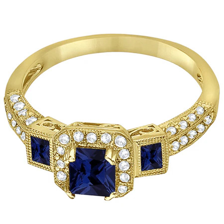 Blue Sapphire & Diamond Engagement Ring in 14k Yellow Gold